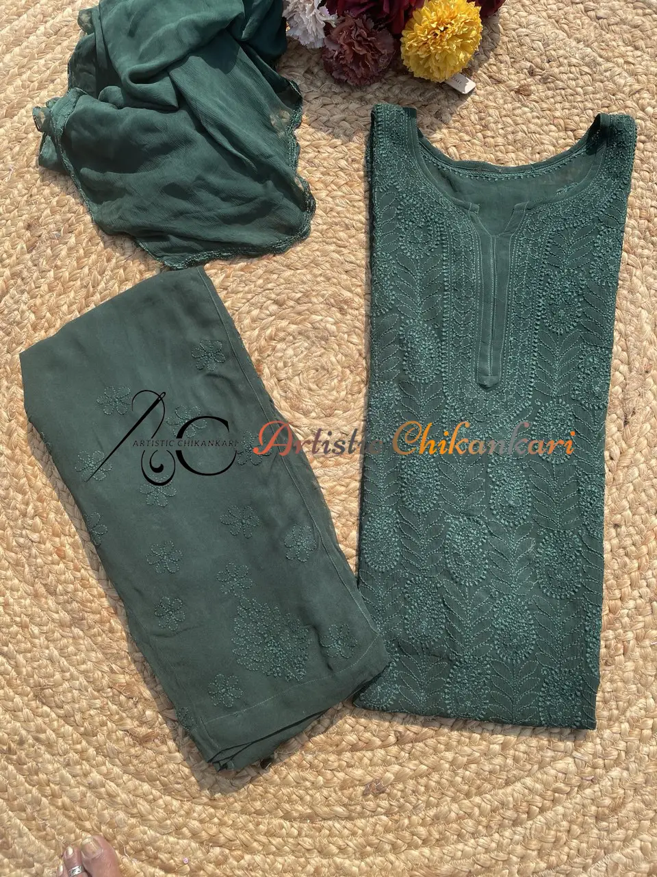 Experience timeless elegance with our handcrafted masterpiece, intricately designed using delicate fabric and adorned with premium silk-thread handwork. Each piece reflects the beauty of traditional craftsmanship and the love poured into every stitch—making your outfit truly one-of-a-kind.